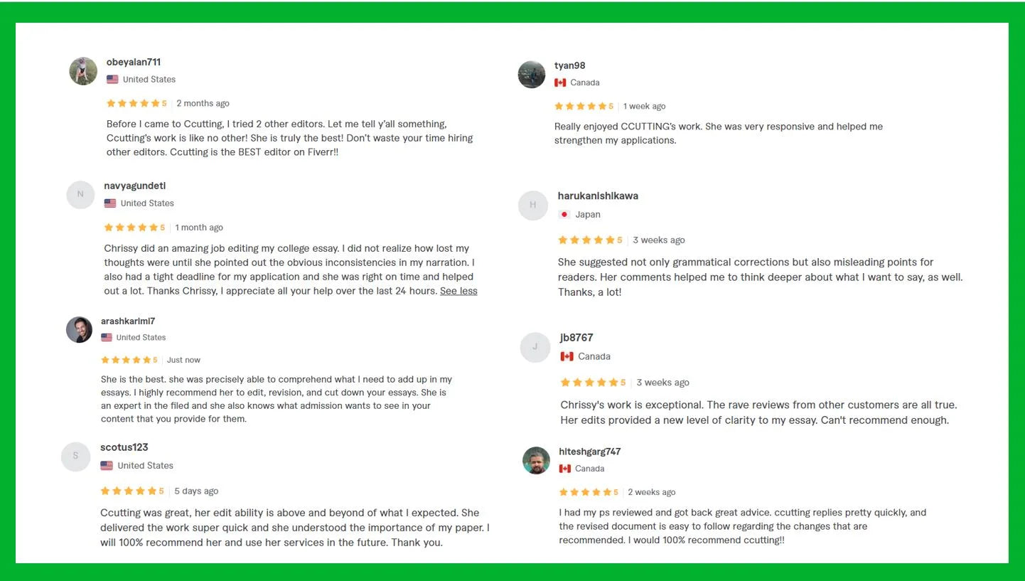 My goal is to make your personal statement, statement of purpose, letter of recommendation, or other college admissions essay shine!